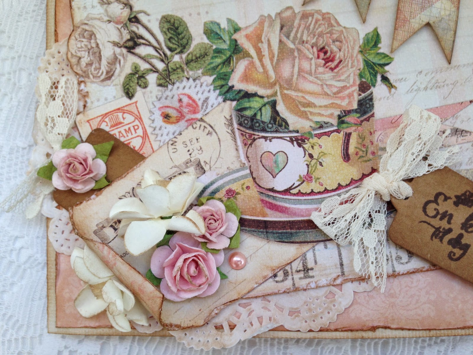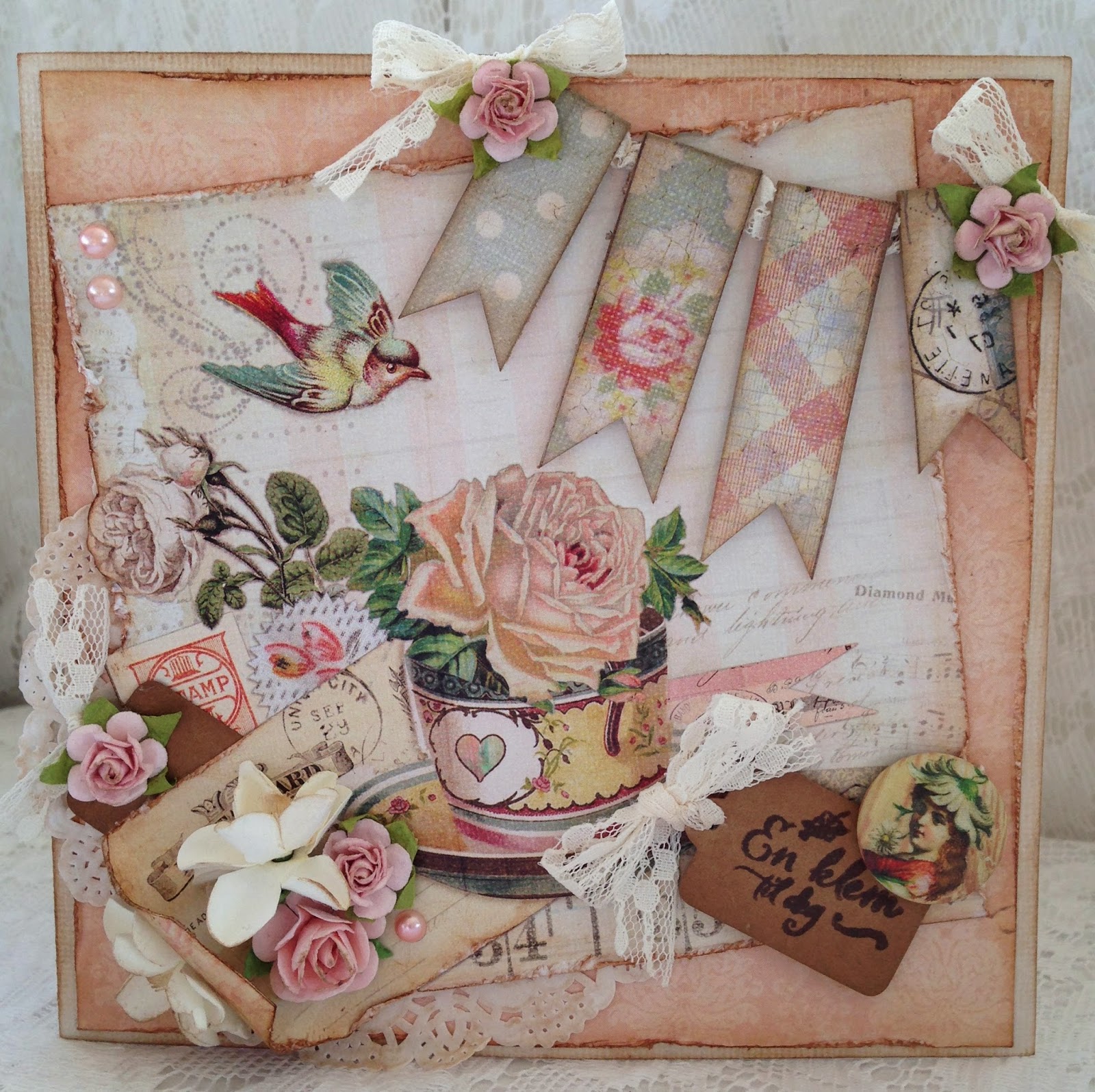 Ellers er det pyntet med en kakeserviett, et par små kraft tags,